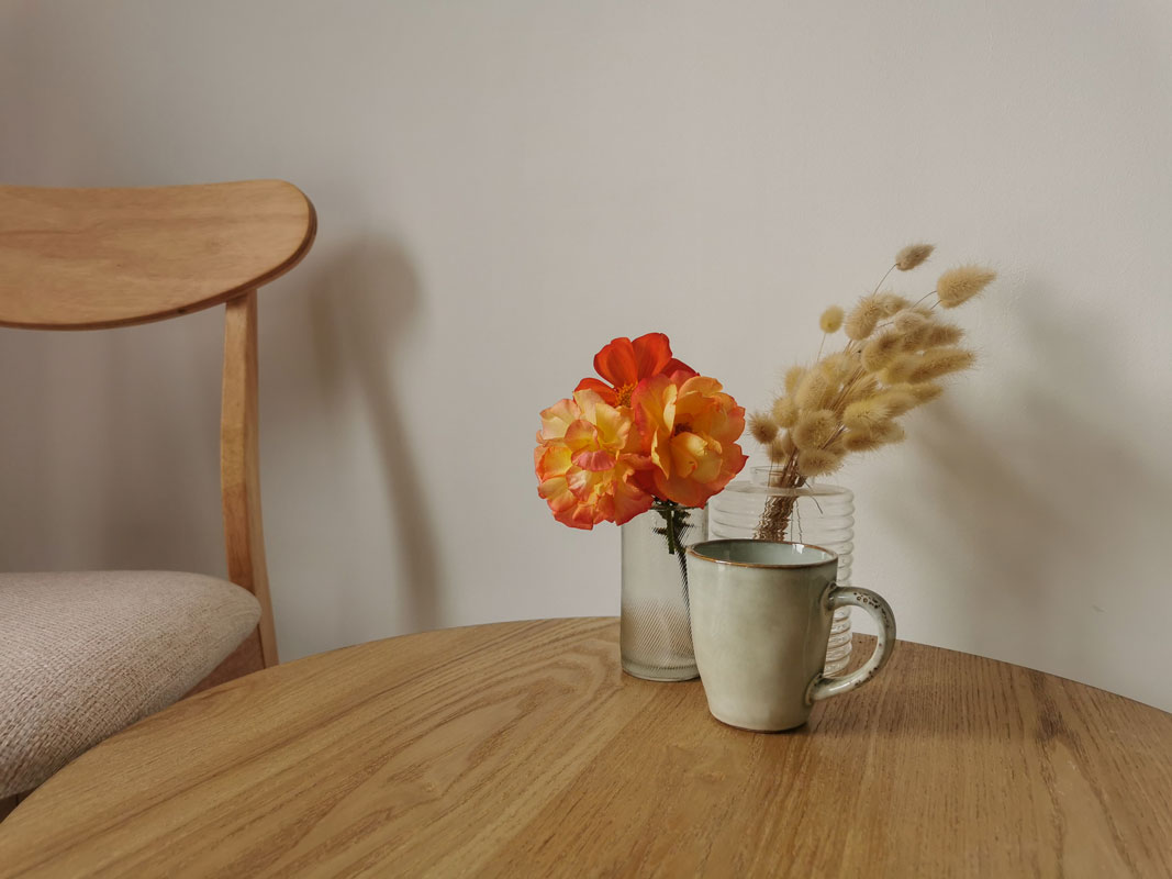 Vous retrouverez une décoration simple et épurée réalisée avec des meubles anciens, rénovés, ou réparés. D’autres sont neufs, mais toujours issus de fabrications respectueuses de l’environnement et des personnes qui les fabriquent.
